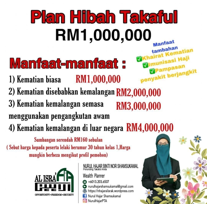 “Sebagai ejen takaful, saya turut mahu mendidik orang ramai betapa pentingnya mereka memiliki takaful bagi setiap ahli keluarga. Saya mahu memberi kesedaran ini kepada masyarakat supaya mereka boleh dibantu kelak apabila mengalami sakit atau sebagainya. Sebarang pertanyaan boleh hubungi 013-203 6507.