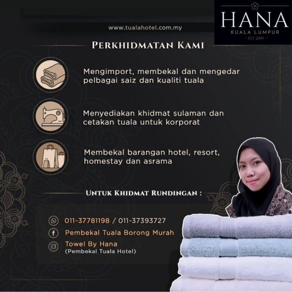 “Tuala yang kami bekalkan adalah tuala muka, tuala tangan, tuala bayi, tuala mandi dewasa pelbagai saiz dan kualiti. Sasaran pasaran kami merangkumi semua tahap. Tuala murah sehinggalah tuala mewah untuk semua termasuk kerabat di raja.