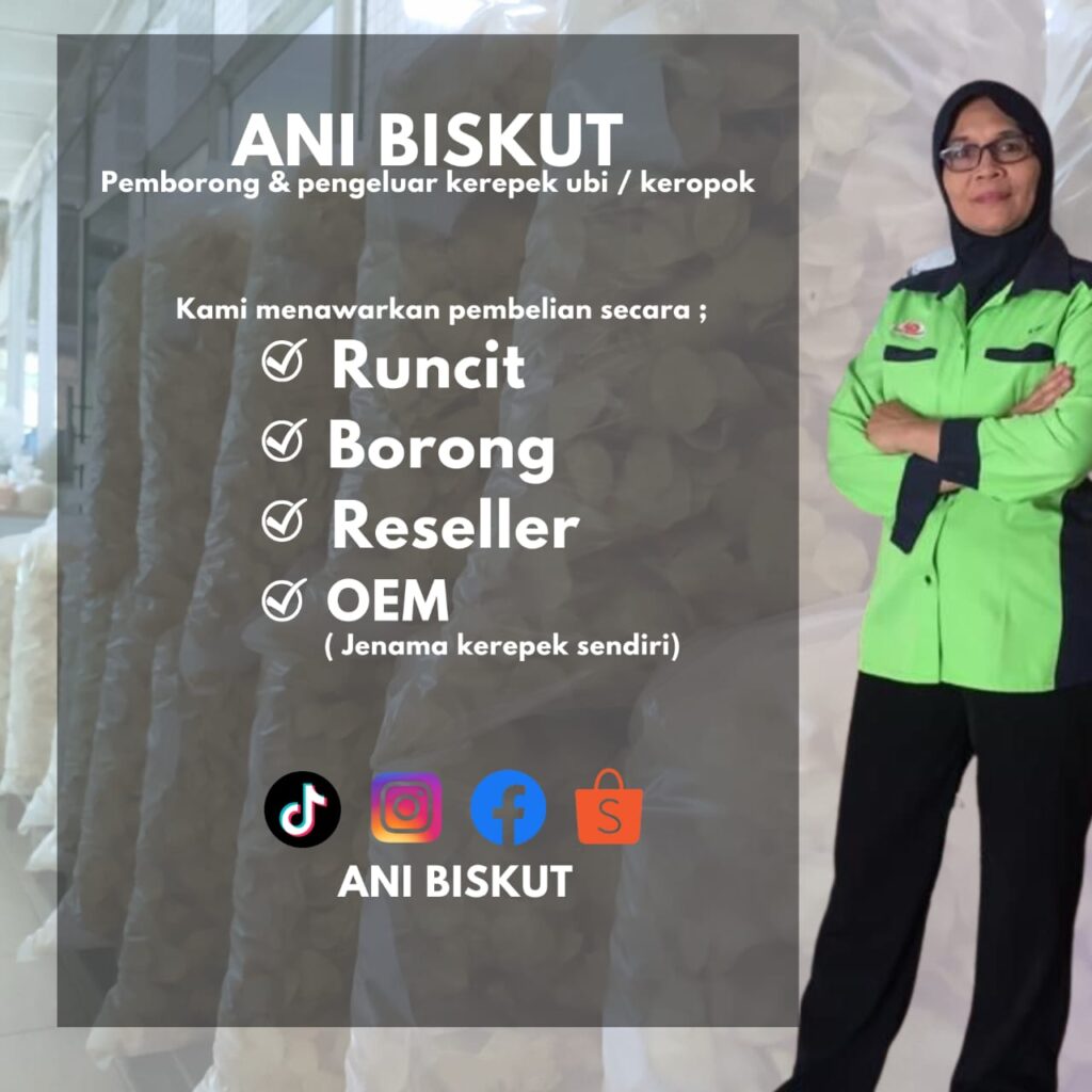 “Dengan tenaga kerja yang mahir dan mesin yang berteknologi tinggi, Ani Biskut mampu membekalkan kerepek yang segar kepada semua pelanggan yang terdiri daripada peniaga makan ringan.