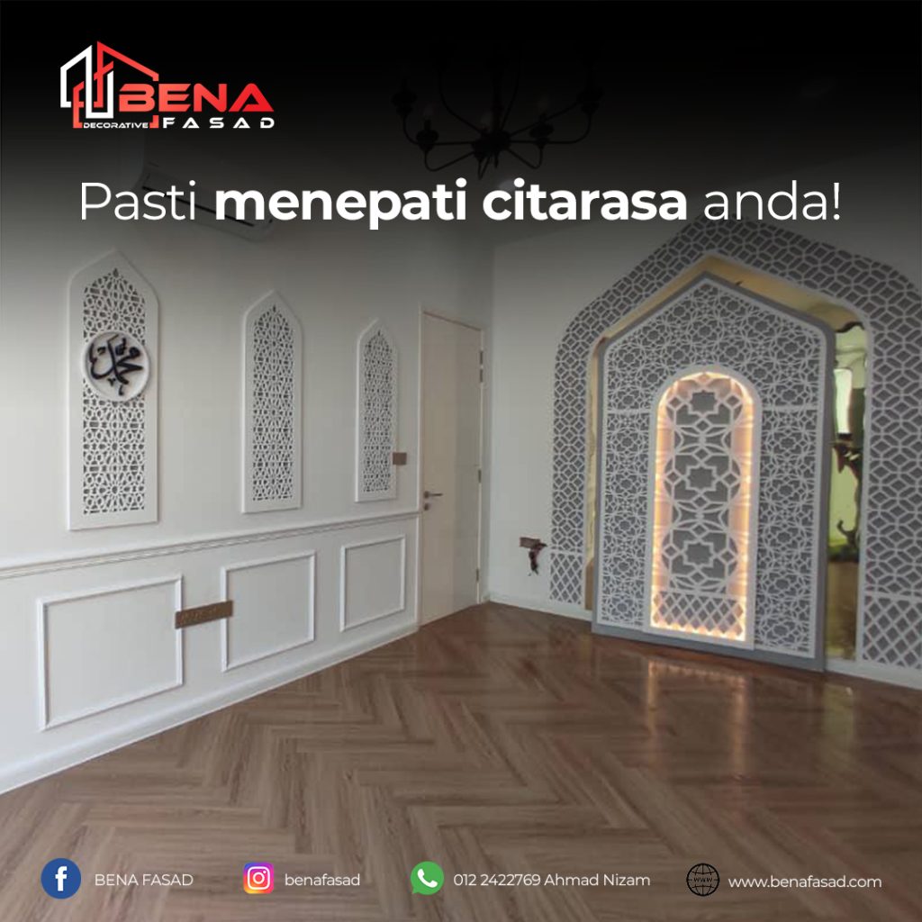 “Pemilihan bahan adalah berkualiti tinggi iaitu kami menggunakan bahan utama seperti Celuka Lattice Composite yang tahan cuaca, kalis air, tahan anai-anai, ringan, bahan yang tidak merebak kebakaran dan bahan ini juga mempunyai sijil SIRIM yang diiktiraf dengan hasil kemasan lebih cantik berbanding bahan dekorasi yang lain.