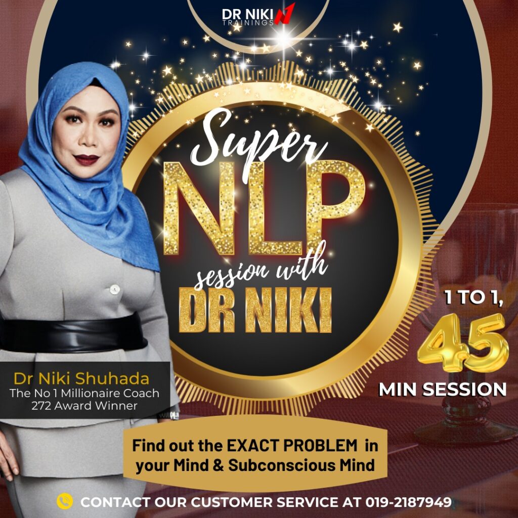 “Kami menyediakan sesi NLP Super Session secara 1-1, sebagai pembuka untuk usahawan segera mendapat Minda & Tabiat yang diperlukan untuk mencapai hasil mereka. Dari situ, mereka boleh memilih latihan latihan lain seperti sesi latihan dan pemantaun secara eksklusif.