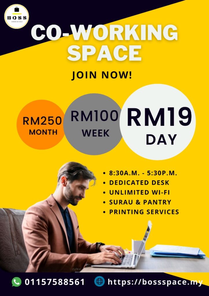“Maksudnya jika orang lain melabur RM 20 ribu untuk buka pejabat, tetapi dengan Boss Space Solution hanya perlu bayar serendah RM590 sebulan.