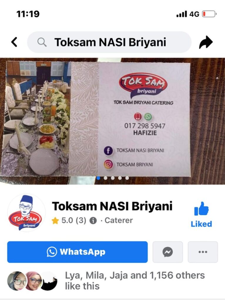 “Kami juga turut menyediakan perkhidmatan katering untuk majlis perkahwinan dan sebarang majlis atas permintaan pelanggan setia kami.