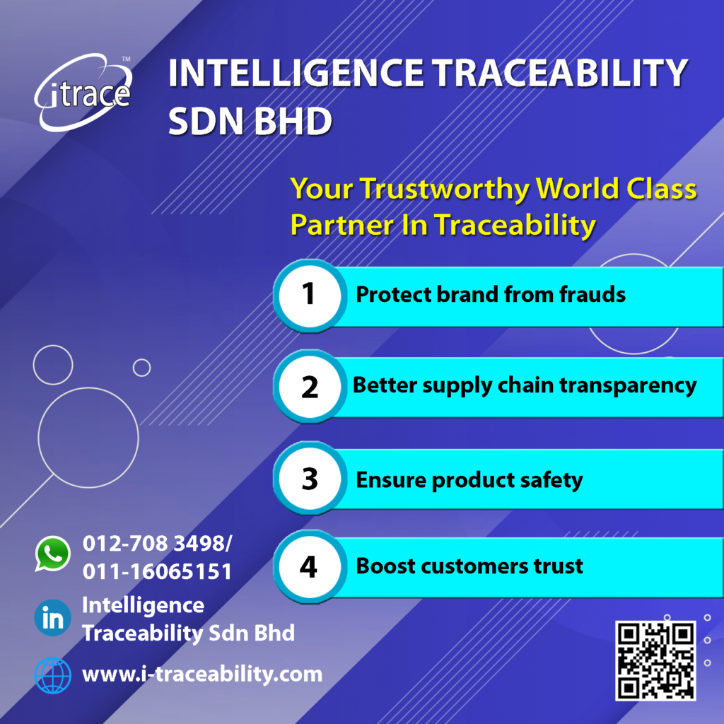 Dengan ini, isu dapat dikenal pasti dan diselesaikan dengan cepat untuk meminimumkan kesan negatif. Dalam erti kata lain, traceability berkelebihan untuk membantu mempercepatkan proses ‘product recalls’ dengan cekap dan menjimatkan kos, sekiranya terdapat sebarang masalah pada produk.