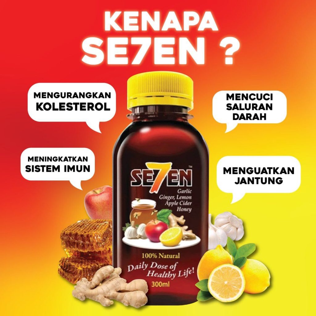 Jus SE7EN adalah minuman botani kesihatan harian dengan formulasi 100 peratus daripada ramuan semula jadi seperti lemon, halia, bawang putih, madu dan cuka epal tanpa bahan pengawet, tanpa pewarna dan tanpa air. Jus SE7EN adalah pati yang boleh bantu merawat dari segi kesihatan yang berkaitan dengan kesihatan jantung, dengan kandungan yang tinggi fiber, ianya juga boleh membantu mengelakkan salur darah tersumbat dan untuk kuatkan system imunisasi.