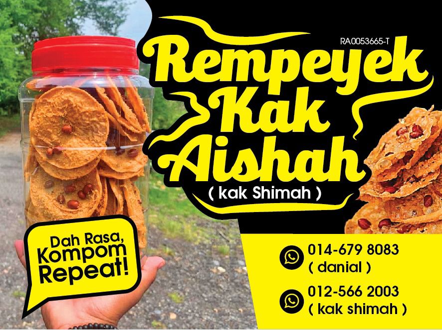 “Apa yang perlu saya buat ialah ingin mempromosikan produk ini ke tahap lebih tinggi serta melantik lebih ramai agen di luar kawasan bagi memastikan jenama Rempeyek Kak Aishah dapat terus berkembang ke serata negara,” tambahnya lagi.