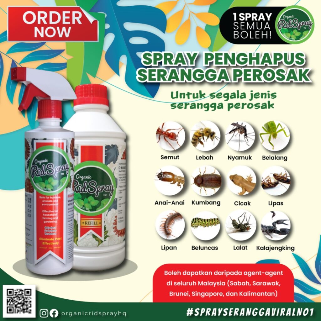 “Ia juga mampu menarik serangga yang sedang bersembunyi untuk keluar apabila disembur. Dengan adanya keunikan seperti ini, saya yakin pelanggan akan tertarik untuk mencuba produk Organic RidSpray ini kerana ia telah terbukti berkesan menghapuskan serangga perosak selain selamat untuk digunakan,” katanya lagi.