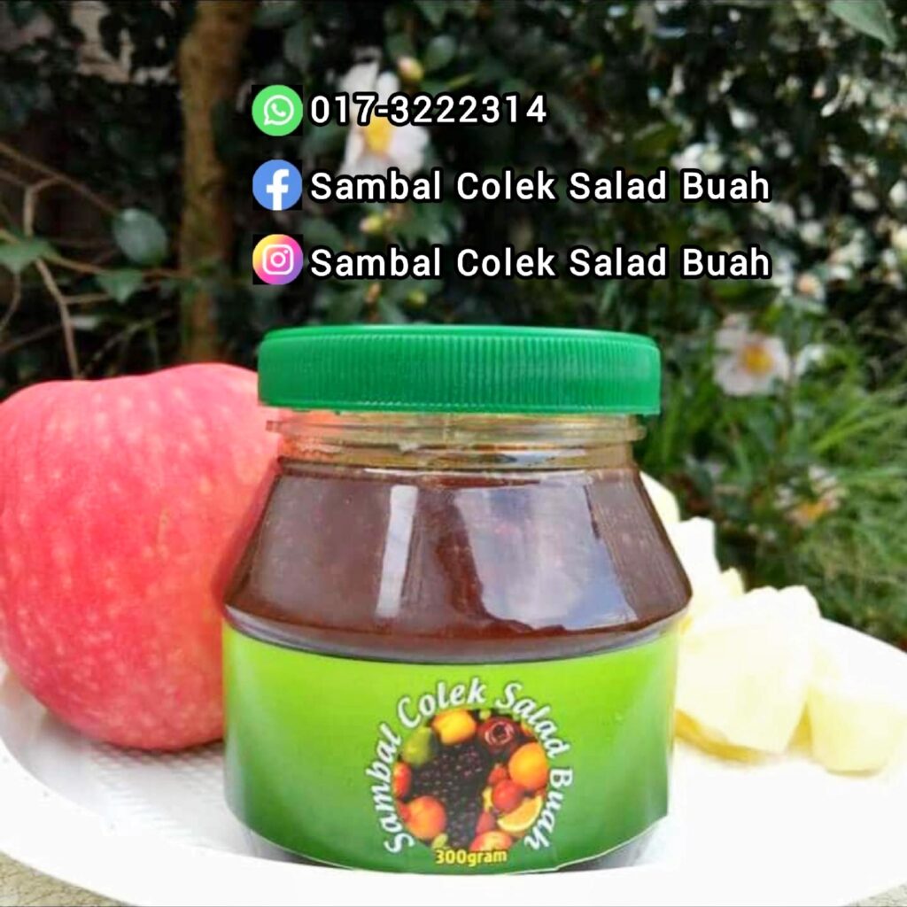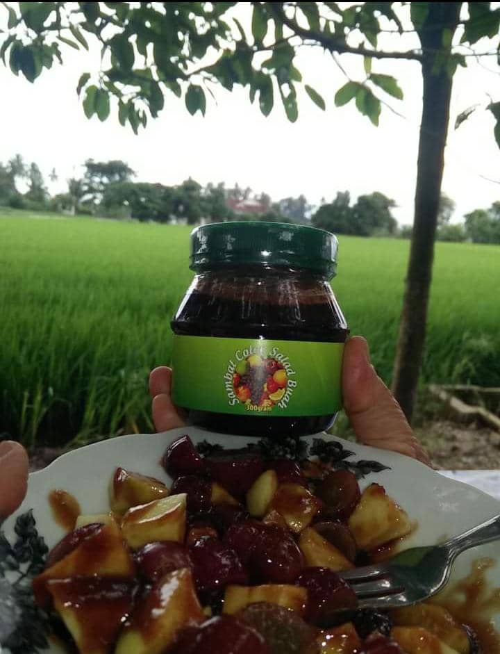 “Bagi sesiapa yang berminat untuk memjadi ejen, promosi untuk ejen di seluruh Malaysia akan diberi dengan harga yang menarik. Berat sebotol Sambal Colek Salad Buah ialah 400gram.