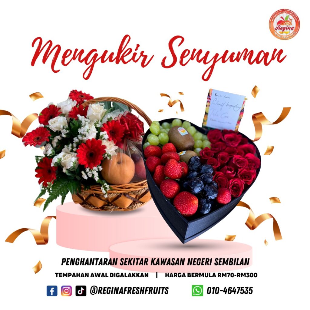 “Perniagaan Regina Fresh Fruits adalah berkaitan dengan buah-buahan premium dan dibingkiskan cantik untuk dijadikan hadiah untuk pelbagai acara dan keperluan.