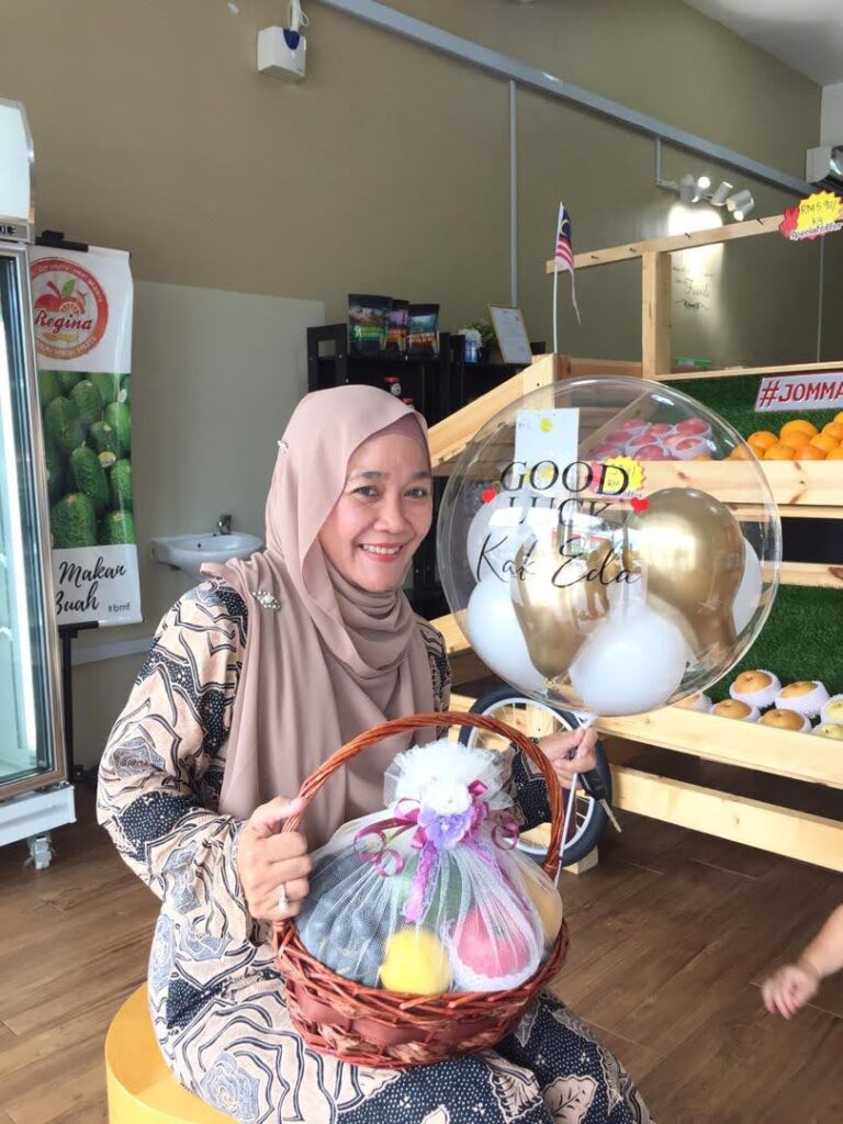“Malah, bingkisan buah-buahan ini juga boleh disertakan dengan jus buah segar yang pekat dan berkhasiat, buah potong yang mudah dan enak dimakan serta buah-buahan juga boleh dijadikan sedekah untuk setiap Jumaat. Semua ini menjadikan Regina Fresh Fruits begitu unik dan cepat terkenal,” ujarnya panjang lebar.