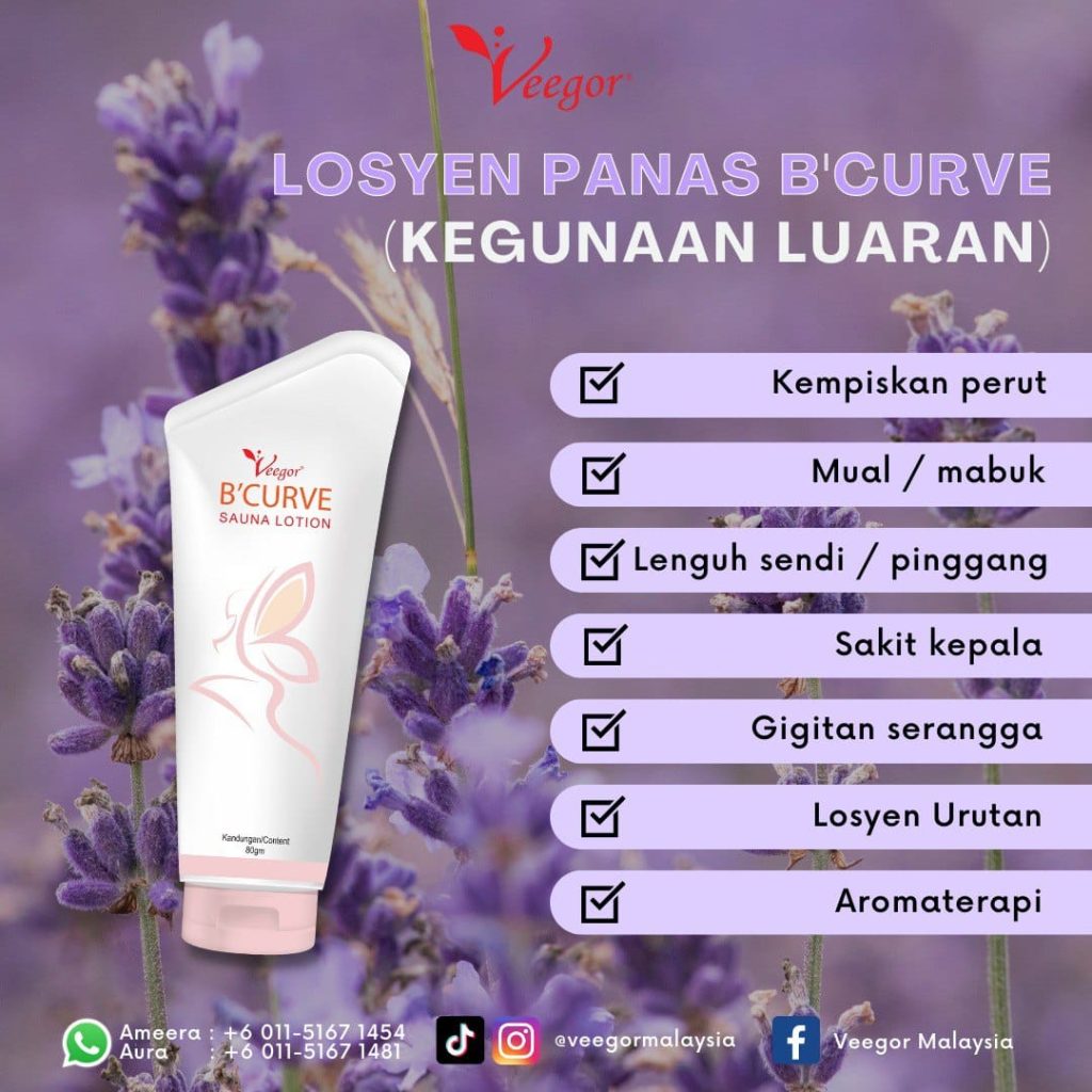 “Bagi produk losyen panas B’curve pula, ia adalah losyen moden yang menggunakan aroma bunga Lavender yang harum dan tidak sama dengan losyen kebanyakan di pasaran yang sinonim dengan bauan asli seperti bau limau, lemon, cengkih, serai dan halia. Pengguna merasakan mereka menggunakan minyak wangi dan aromanya sangat menenangkan untuk terapi minda.